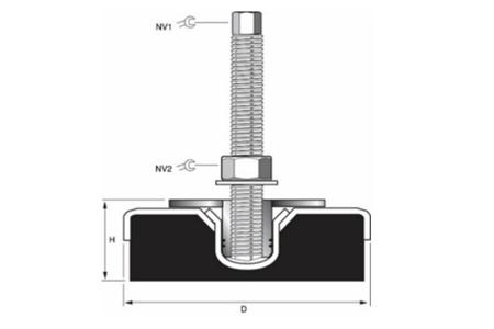 Serious 20mm 200mm Dia. Natural Rubber Levelling Adjustable Foot, 5500kg Static Load Capacity