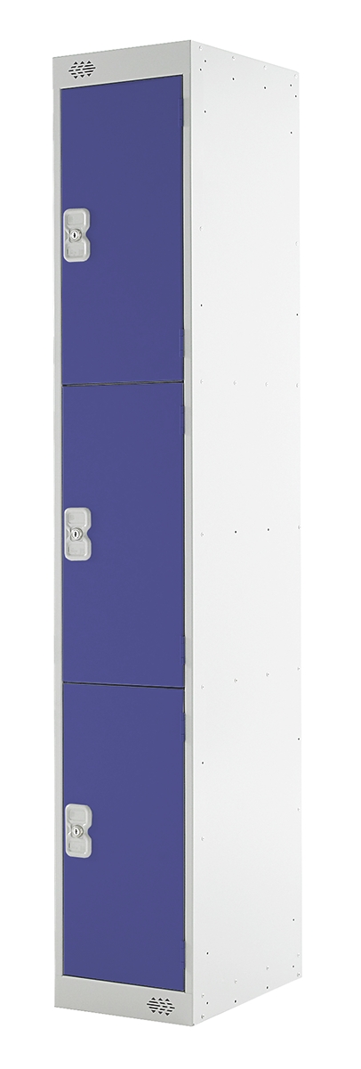 RS PRO 3 Door Steel Blue Storage Locker, 1800 mm x 300 mm x 450mm