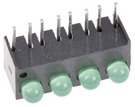 Dialight 551-0207-004F, Green Right Angle PCB LED Indicator, 4 LEDs, Through Hole 2.1 V