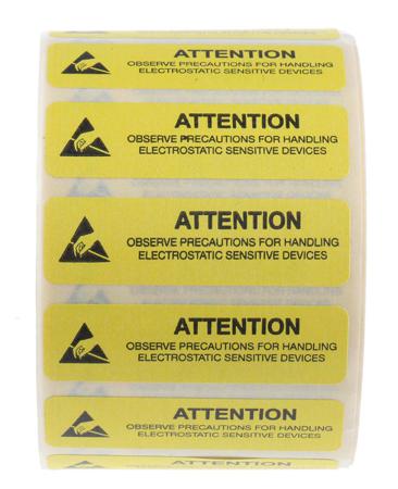 RS PRO Yellow Vinyl ESD Label, Attention Observe Precautions For Handling Electrostatic Discharge Sensitive Device-Text