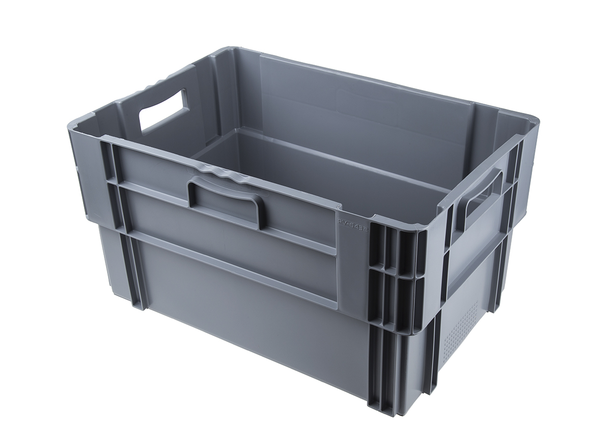 RS PRO 60L Grey PP Large Storage Box, 320mm x 400mm x 600mm
