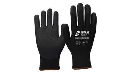 NITRAS SAFETY 1606W/NITRAS SNOW FIGHTER Black Nylon Glove, Size 9, Nitrile Coating